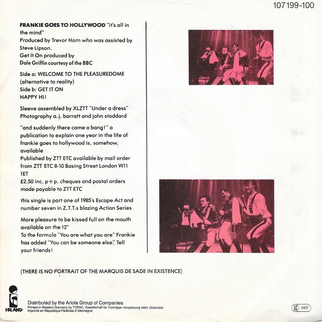 A: Welcome To The Pleasuredome "original 7 inch" (4:22)