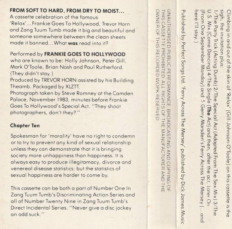 1: 01. Relax (the party trick / acting dumb) (0:40) / 02. Relax (the special act adapted from the sex mix) (7:33) 03. Relax (the us mix / come dancing) (4:30) / 04. Relax (the single / the act) (3:50) / 05. Later On (from one september monday) (1:33) / 06. Ferry Across The Mersey (4:04)